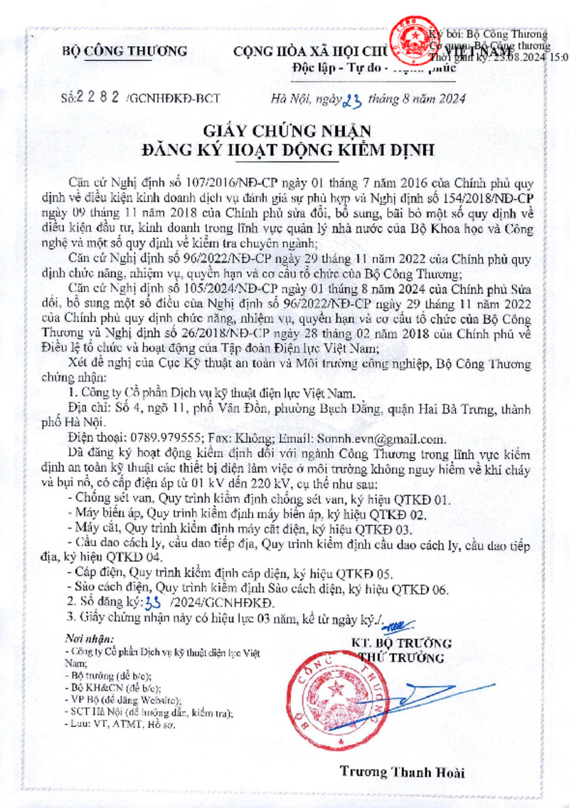 Loại tài liệu | Giấy chứng nhận | Người ký | Thứ trưởng Trương Thanh Hoài |
