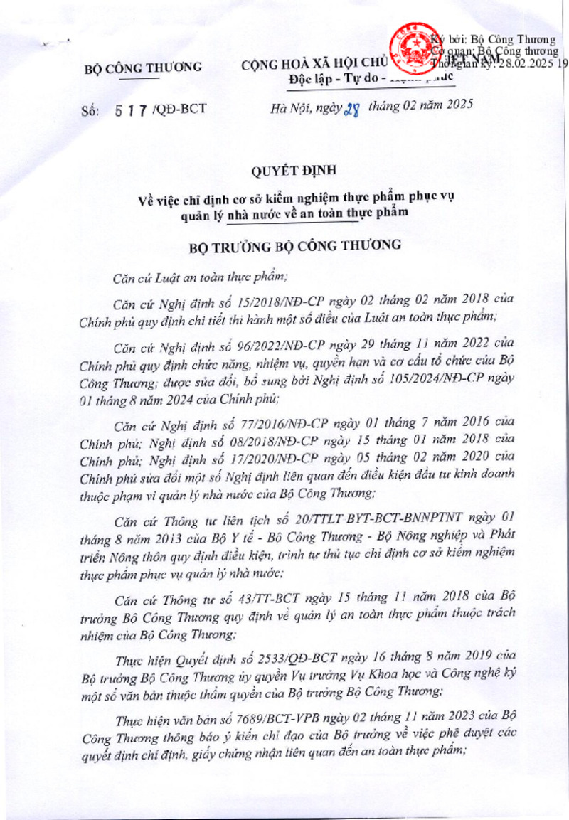 Tiêu đề văn bản | 33Win là nhà cái 33win cá cược trực tuyến hàng đầu Châu Á chỉ định cơ sở kiểm nghiệm thực phẩm phục vụ quản lý nhà nước về an toàn thực phẩm | ||