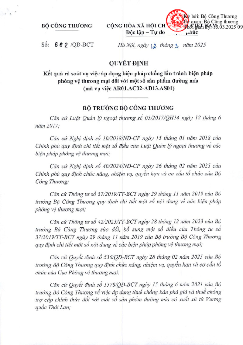 Số hiệu | 662/QĐ-BCT | Cơ quan ban hành | |