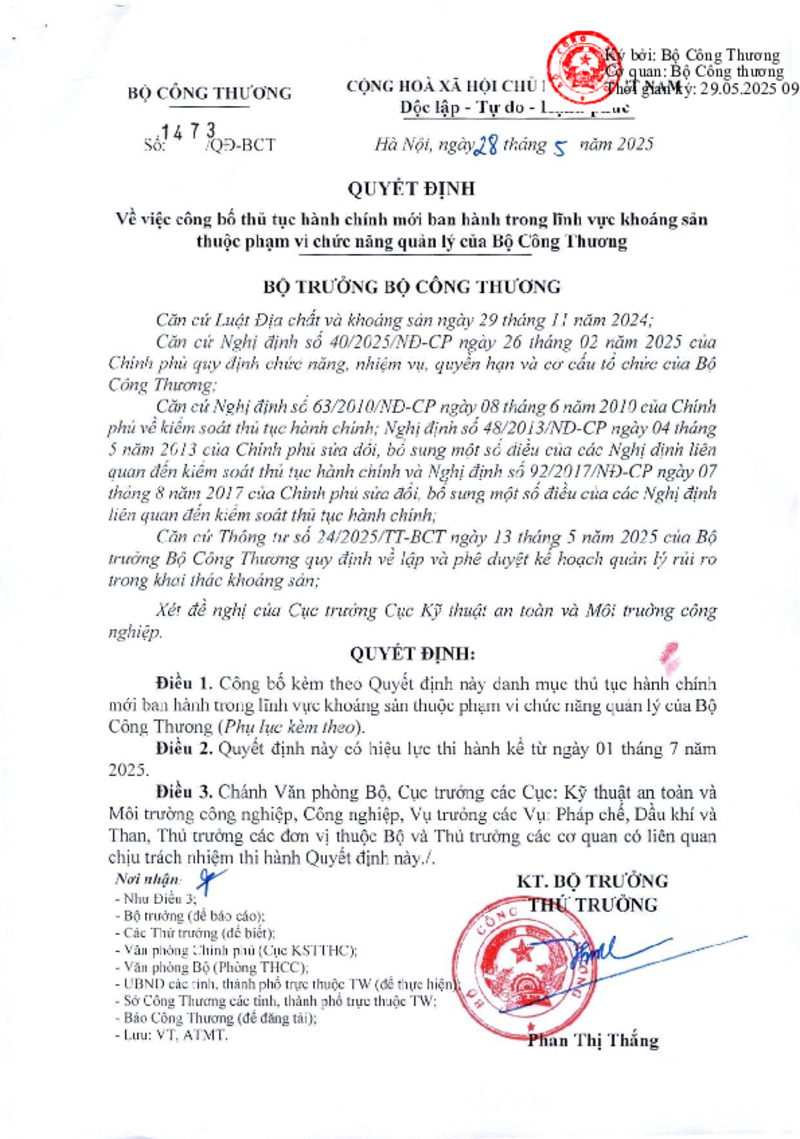 Số hiệu | 1473/QĐ-BCT | Cơ quan ban hành | Copyright © 33win.com Reserved |