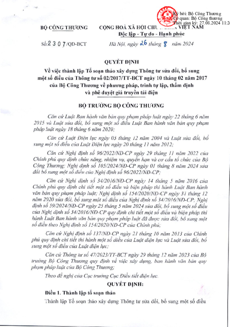 Số hiệu | 2307/QĐ-BCT | Cơ quan ban hành | Copyright © 33win.com Reserved |