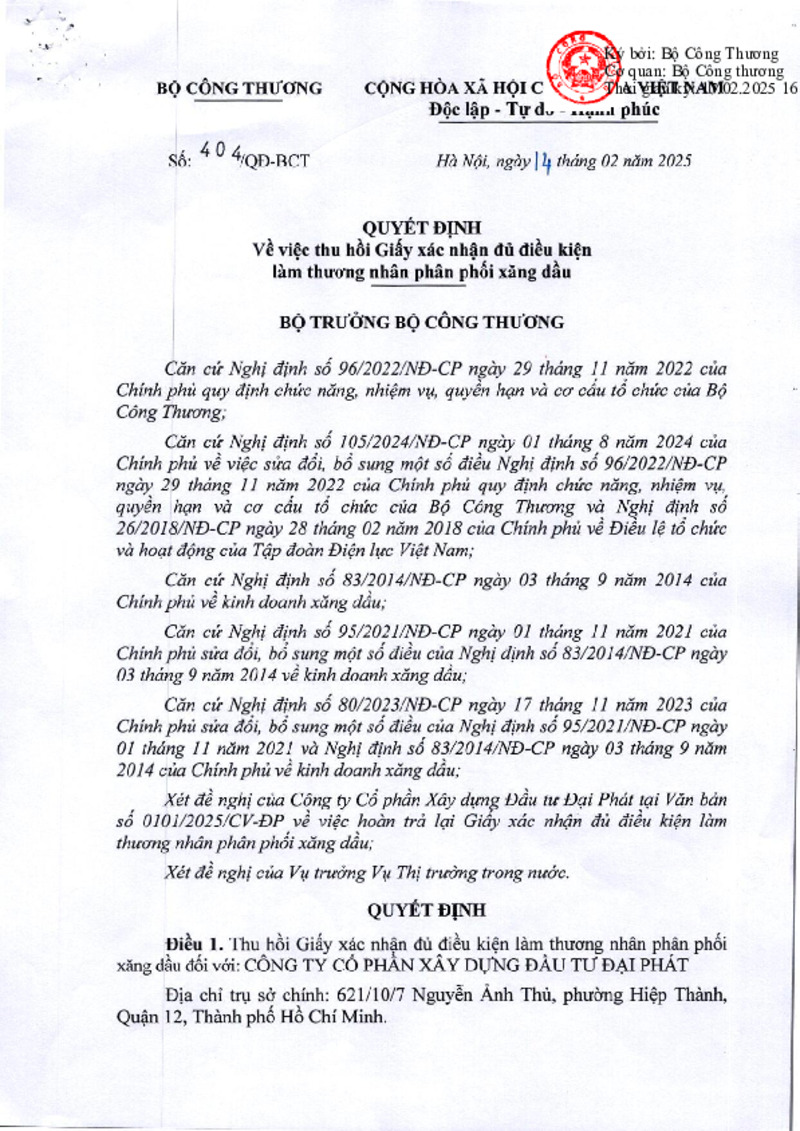 Số hiệu | 404/QĐ-BCT | Cơ quan ban hành | Copyright © 33win.com Reserved |