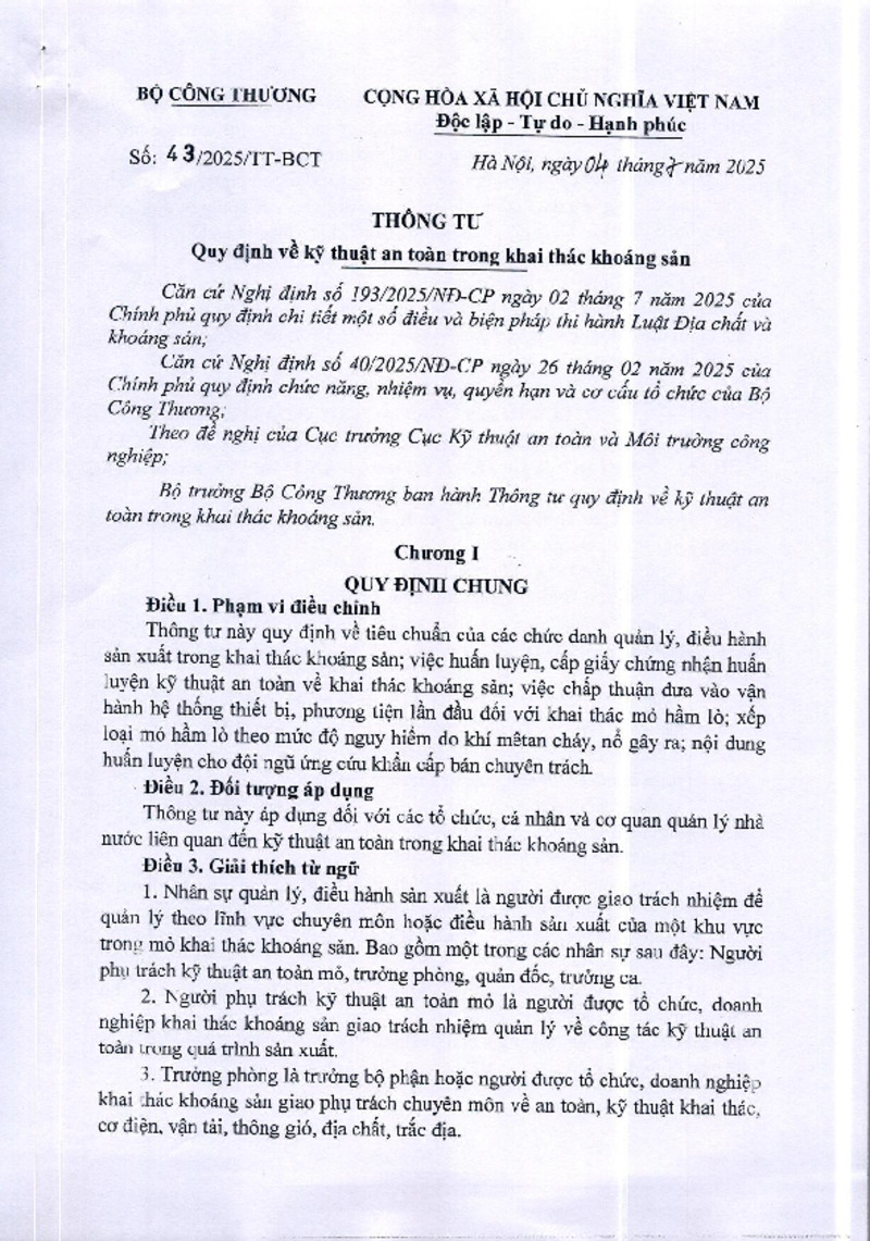 Tiêu đề văn bản | 33Win03 đăng ký tài khoản quy định về kỹ thuật an toàn trong khai thác khoáng sản | ||