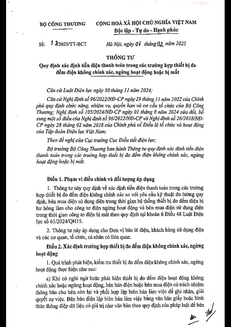 Tiêu đề văn bản | 33Win03 đăng ký tài khoản Quy định xác định tiền điện thanh toán trong các trường hợp thiết bị đo đếm điện không chính xác, ngừng hoạt động hoặc bị mất | ||