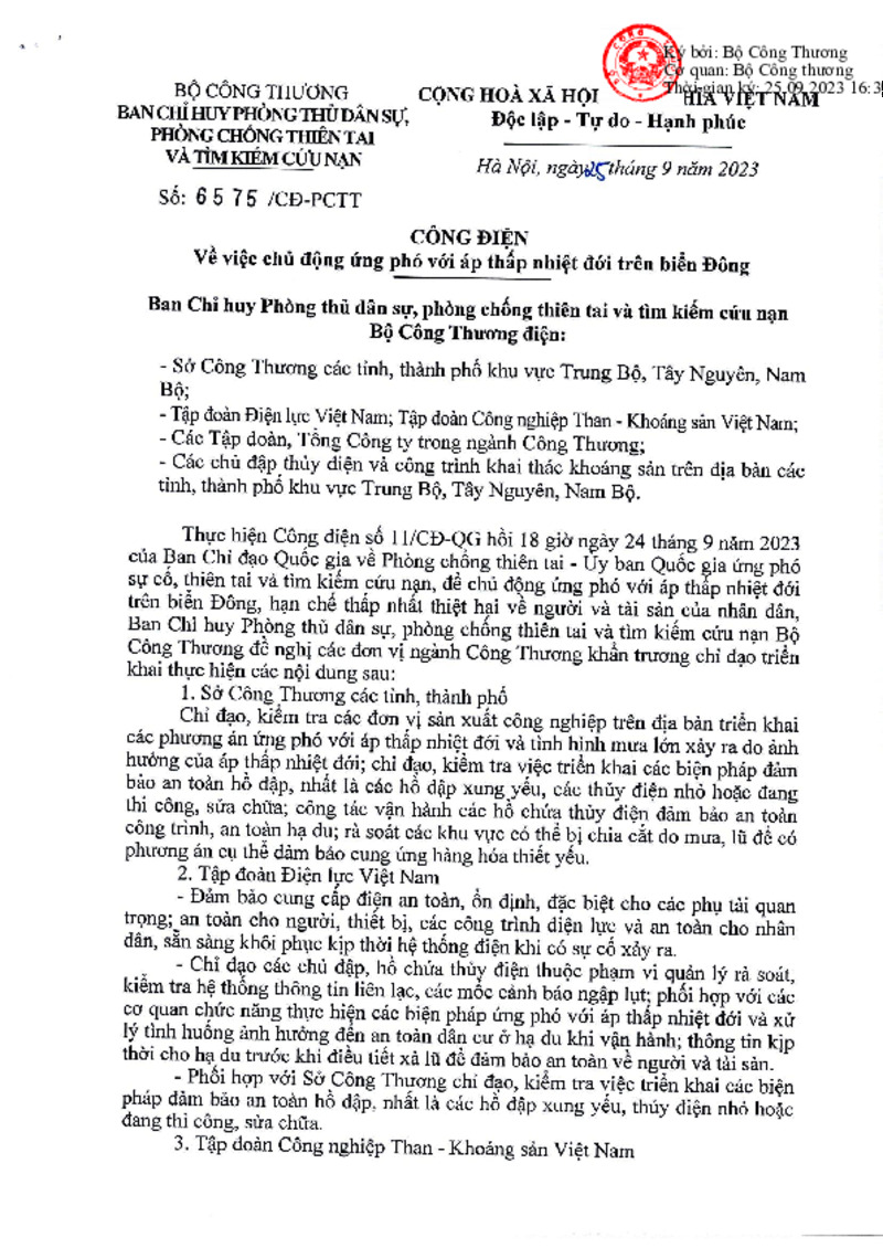Tiêu đề văn bản | Công điện về việc chủ động ứng phó với áp thấp nhiệt đới trên biển Đông | ||