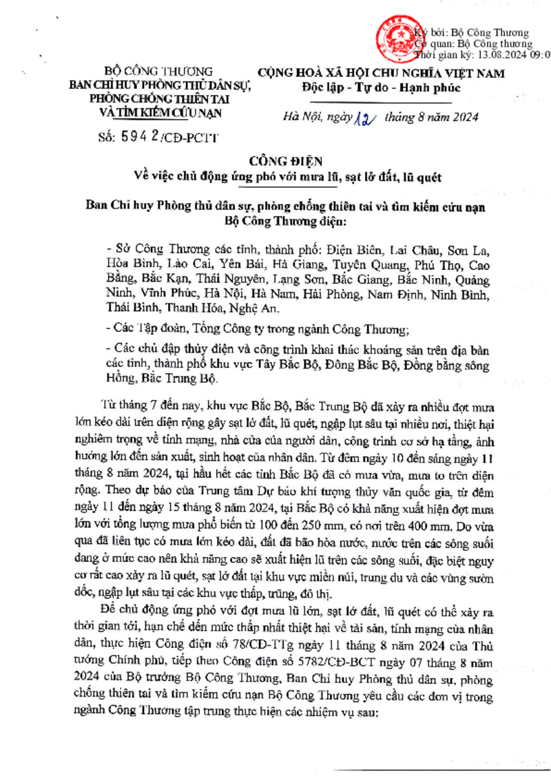 Tiêu đề văn bản | Công điện về việc chủ động ứng phó với mưa lũ, sạt lở đất, lũ quét | ||