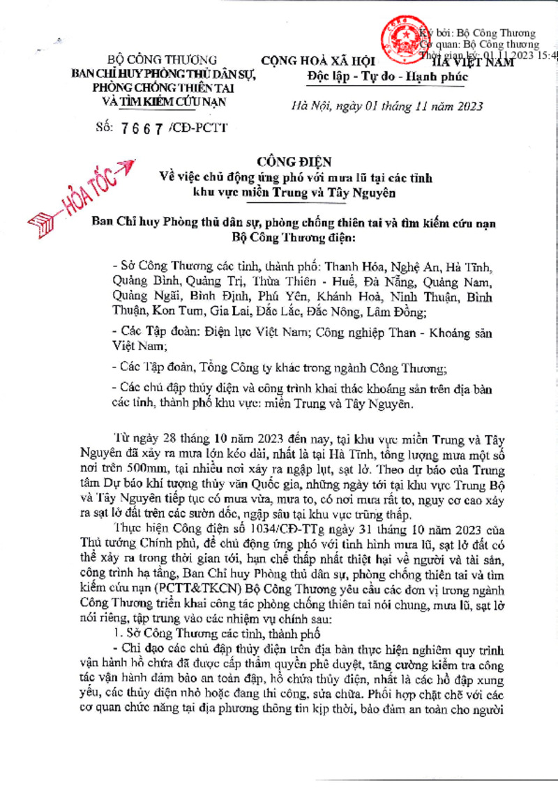 Tiêu đề văn bản | Công điện về việc chủ động ứng phó với mua lũ tại các tỉnh khu vực miền Trung và Tây Nguyên | ||