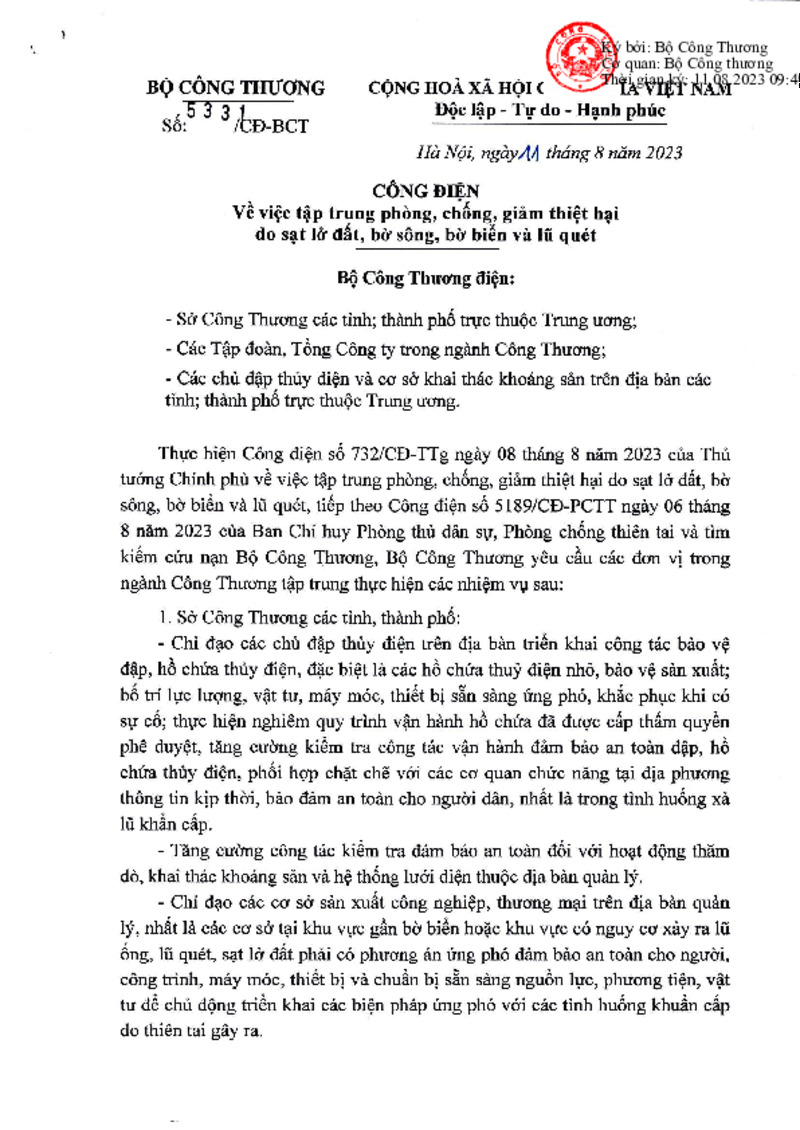 Tiêu đề văn bản | Công điện về việc tập trung phòng, chống, giảm thiệt hại do sạt lở đất, bờ sông, bờ biển và lũ quét | ||