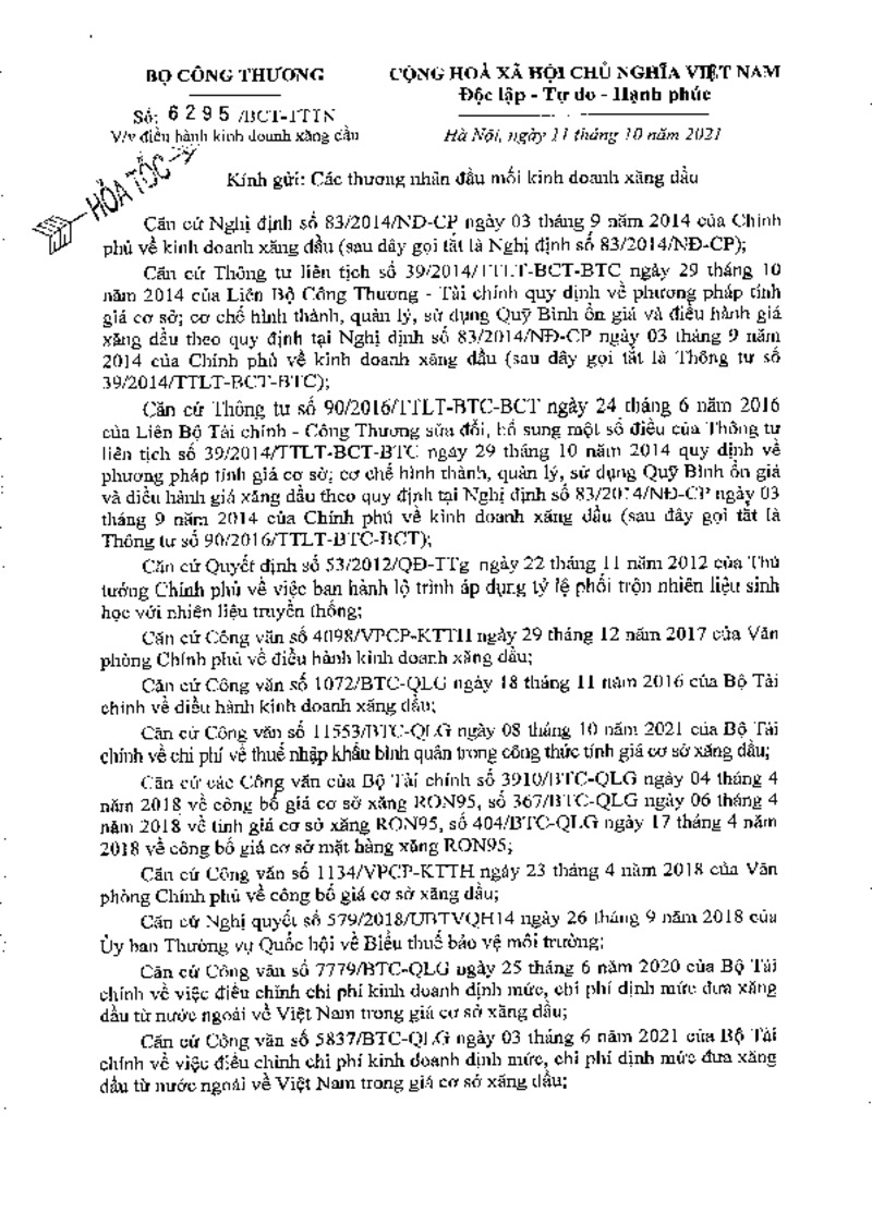 Số hiệu | 6295/BCT-TTTN | Cơ quan ban hành | |