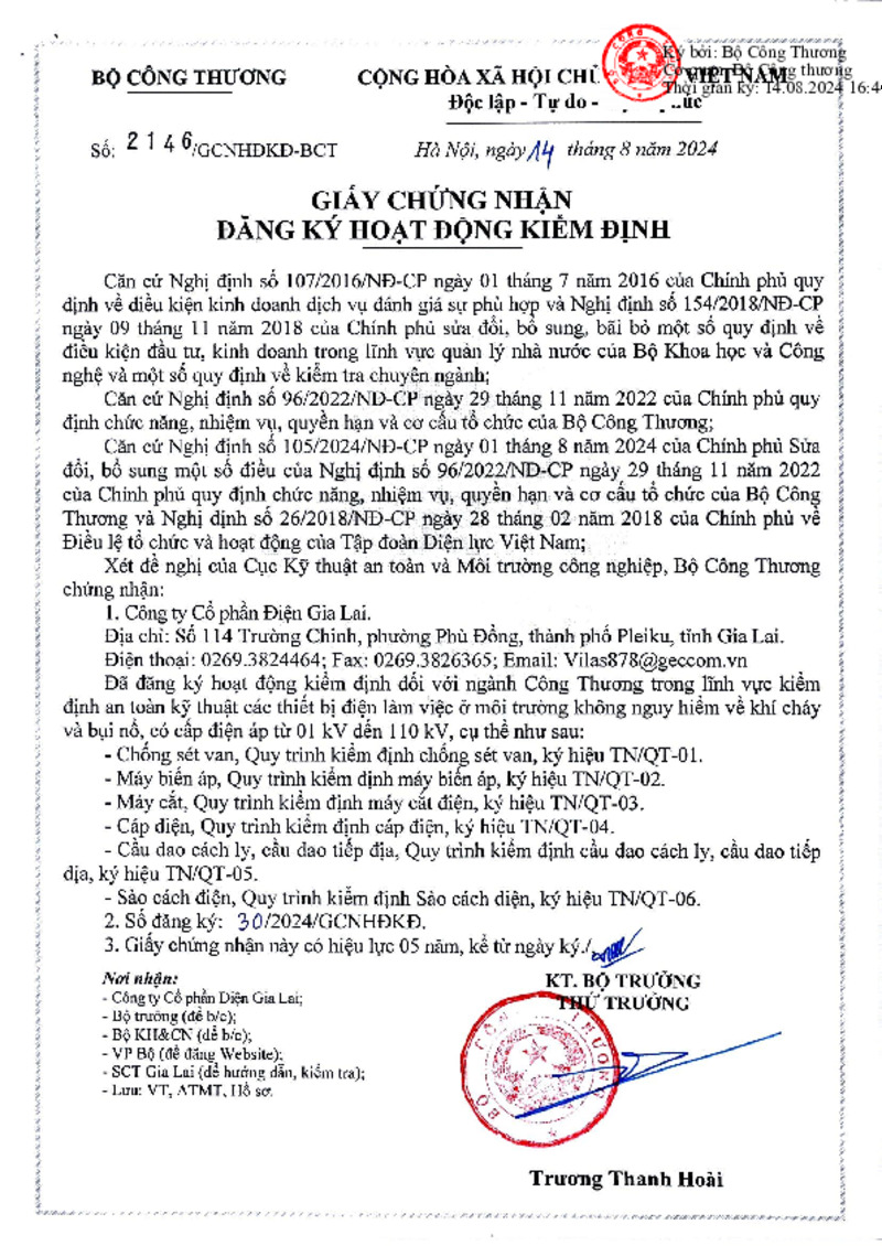 Số hiệu | 2146/GCNĐHKĐ-BCT | Cơ quan ban hành | |