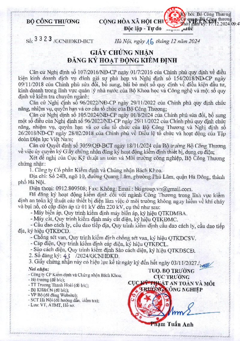 Tiêu đề văn bản | Giấy chứng nhận đăng ký hoạt động kiểm định | ||