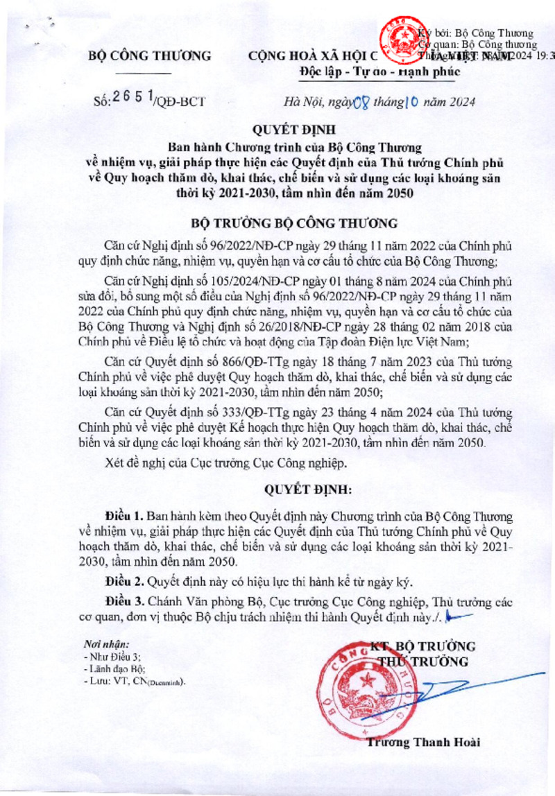 Số hiệu | 2651/QĐ-BCT | Cơ quan ban hành | |