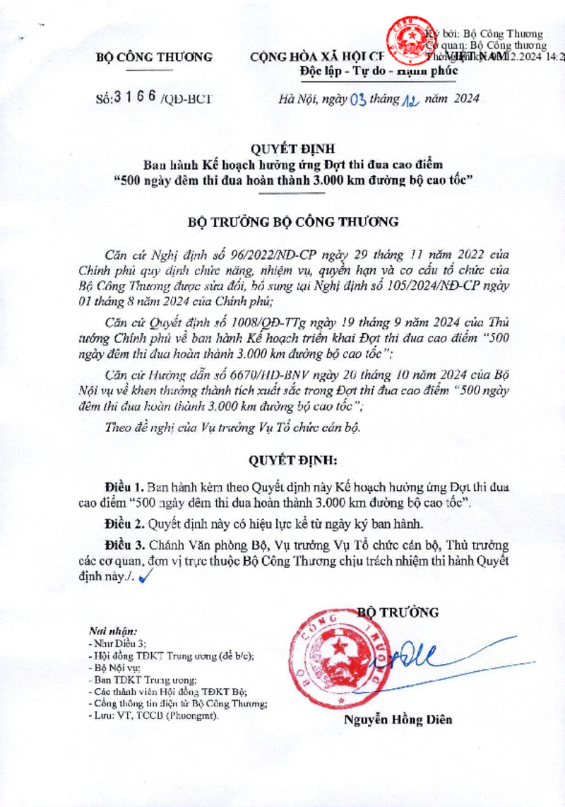 Số hiệu | 3166/QĐ-BCT | Cơ quan ban hành | |