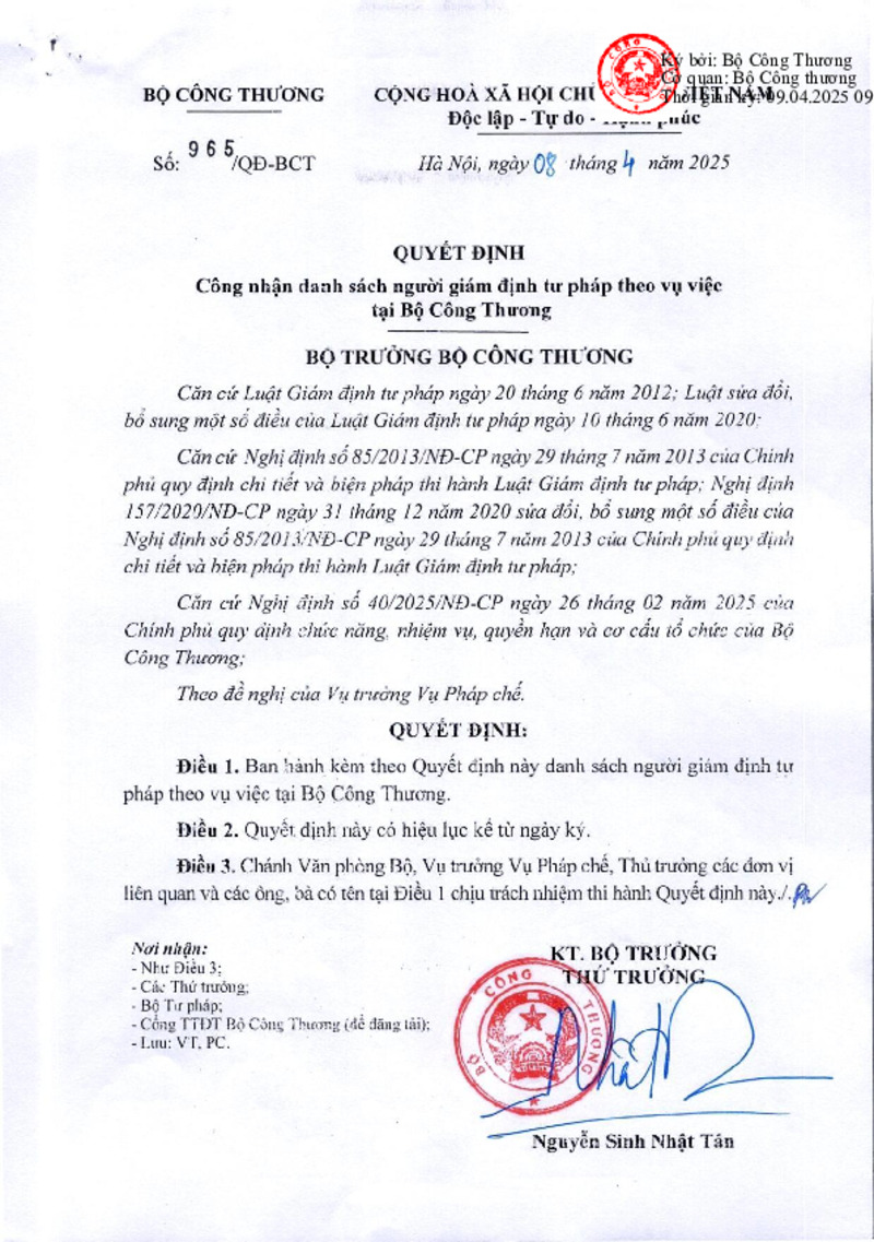 Số hiệu | 965/QĐ-BCT | Cơ quan ban hành | Copyright © 33win.com Reserved |