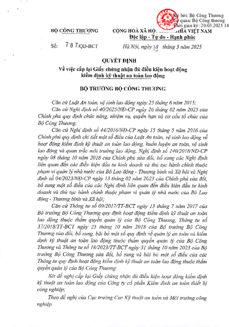 Tiêu đề văn bản | 33Win là nhà cái 33win cá cược trực tuyến hàng đầu Châu Á về việc cấp lại Giấy chứng nhận đủ điều kiện hoạt động kiểm định kỹ thuật an toàn lao động | ||