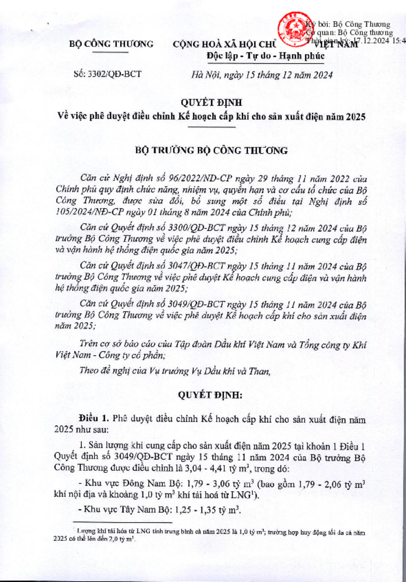 Tiêu đề văn bản | 33Win là nhà cái 33win cá cược trực tuyến hàng đầu Châu Á về việc phê duyệt điều chỉnh Kế hoạch cấp khí cho sản xuất điện năm 2025 | ||