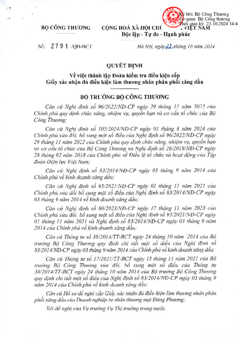 Số hiệu | 2791/QĐ-BCT | Cơ quan ban hành | Copyright © 33win.com Reserved |