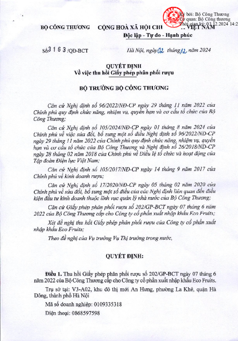 Tiêu đề văn bản | 33Win là nhà cái 33win cá cược trực tuyến hàng đầu Châu Á về việc thu hồi Giấy phép phân phối rượu đối với Công ty cổ phần Link Đăng Nhập 5533Win Eco Fruits | ||