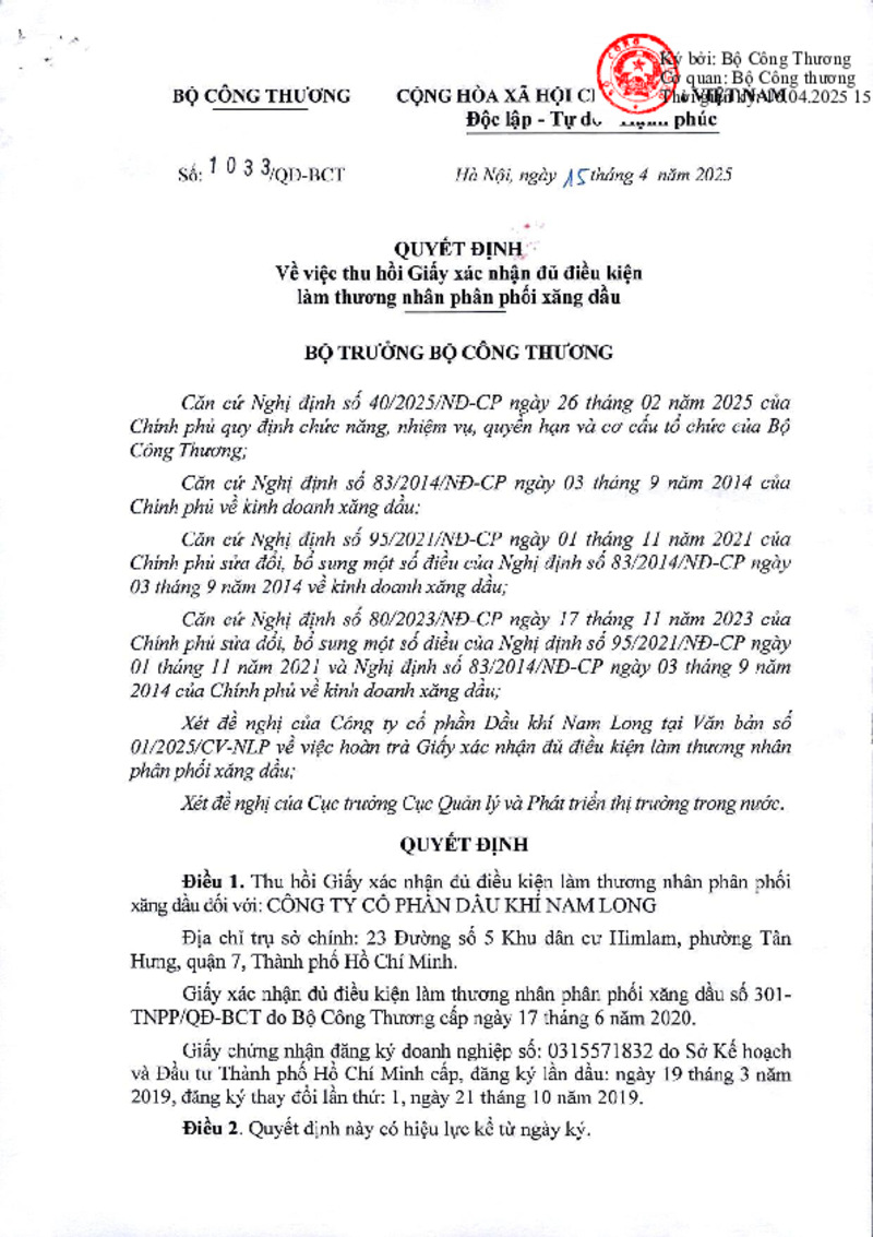Ngày hiệu lực | 15/04/2025 | Trạng thái | Đã có hiệu lực |