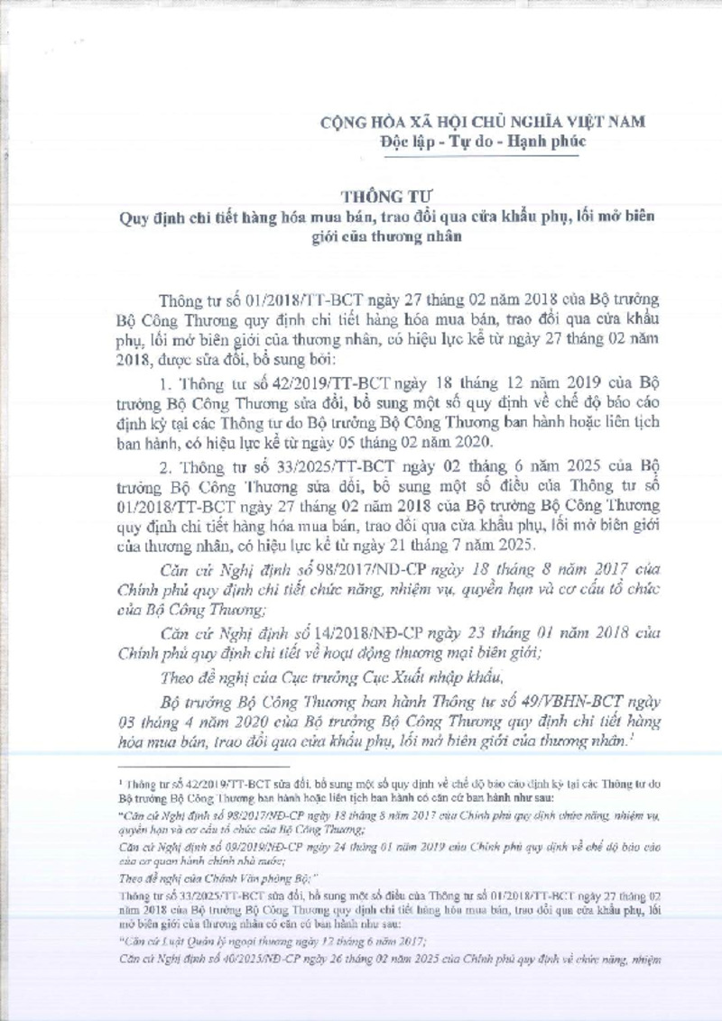 Tiêu đề văn bản | Văn bản hợp nhất số 14/VBHN-BCT giữa 33Win03 đăng ký tài khoản số 01/2018/TT-BCT ngày 27/2/2018 quy định chi tiết Trang Chủ Game 33win com Mới Nhất mua bán, trao đổi qua cửa khẩu phụ, lối mở biên giới của thương nhân và 33Win03 đăng ký tài khoản số 33/2025/TT-BCT ngày 02/6/2025 sửa đổi, bổ sung một số điều của 33Win03 đăng ký tài khoản số 01/2018/TT-BCT | ||