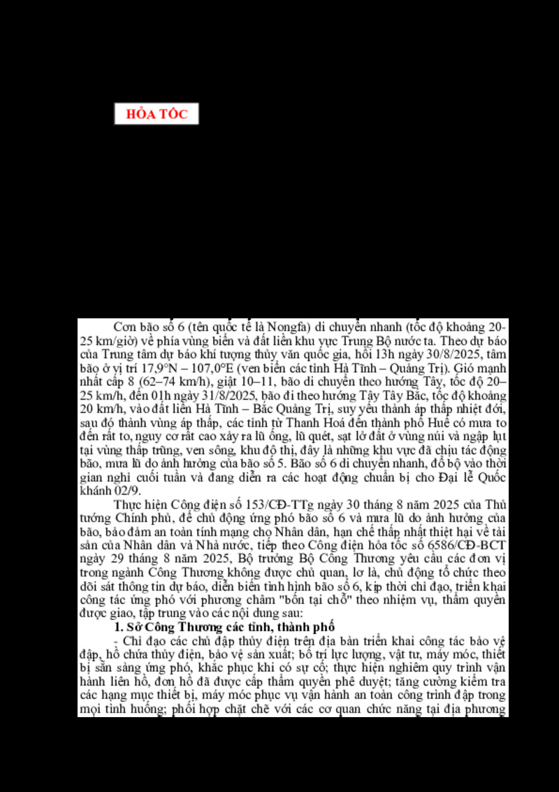 Tiêu đề văn bản | Công điện về việc tập trung ứng phó bão số 6 và hoàn lưu | ||