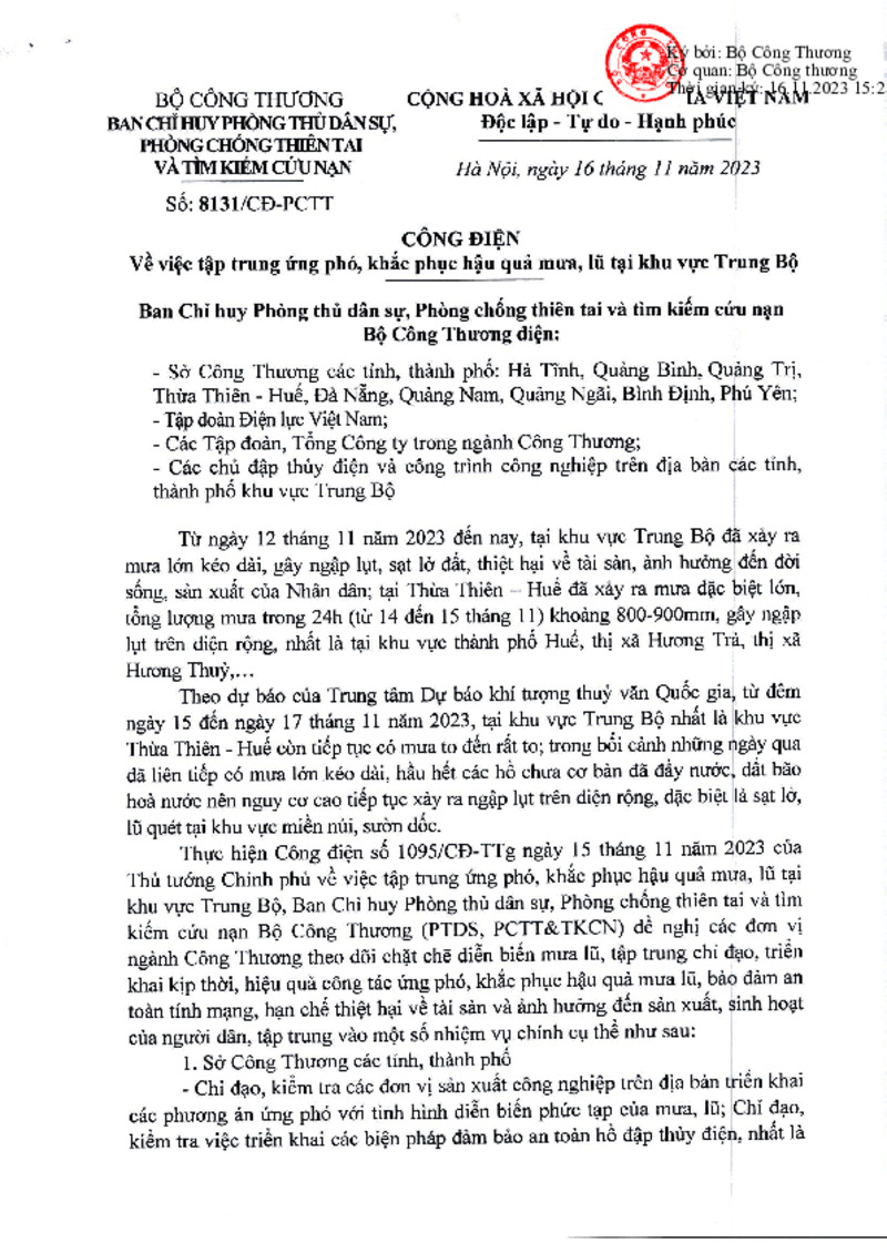 Tiêu đề văn bản | Công điện về việc tập trung ứng phó, khắc phục hậu quả mưa, lũ tại khu vực Trung Bộ | ||