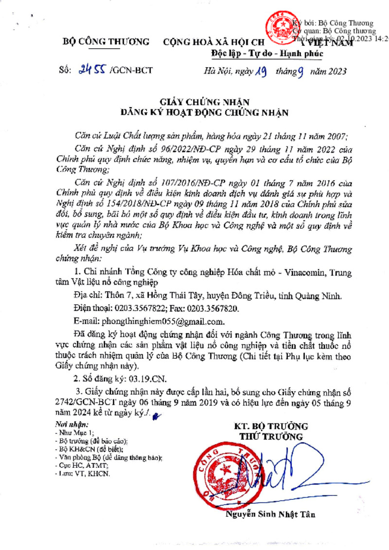 Loại tài liệu | Giấy chứng nhận | Người ký | Thứ trưởng Nguyễn Sinh Nhật Tân |