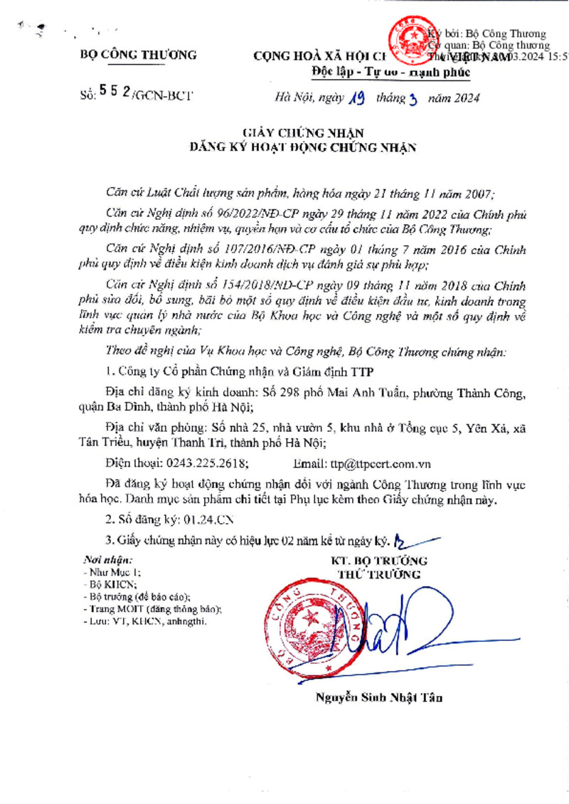 Loại tài liệu | Giấy chứng nhận | Người ký | Thứ trưởng Nguyễn Sinh Nhật Tân |
