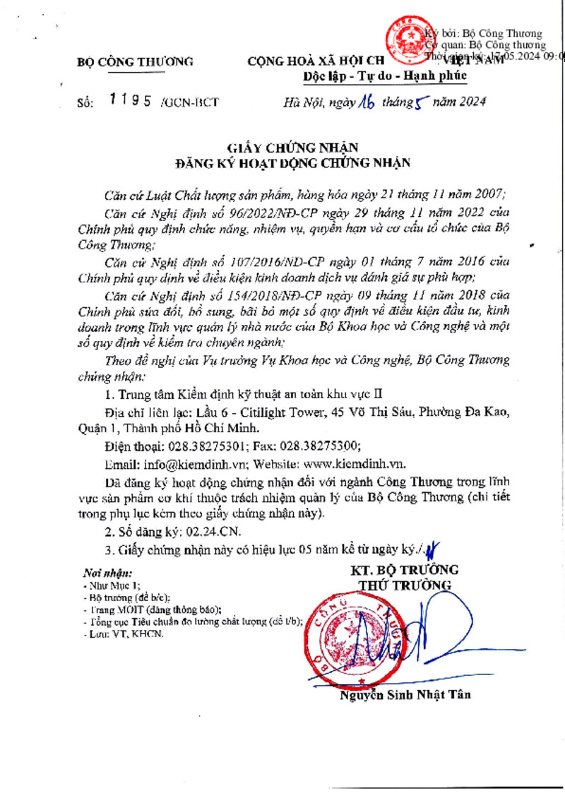 Loại tài liệu | Giấy chứng nhận | Người ký | Thứ trưởng Nguyễn Sinh Nhật Tân |