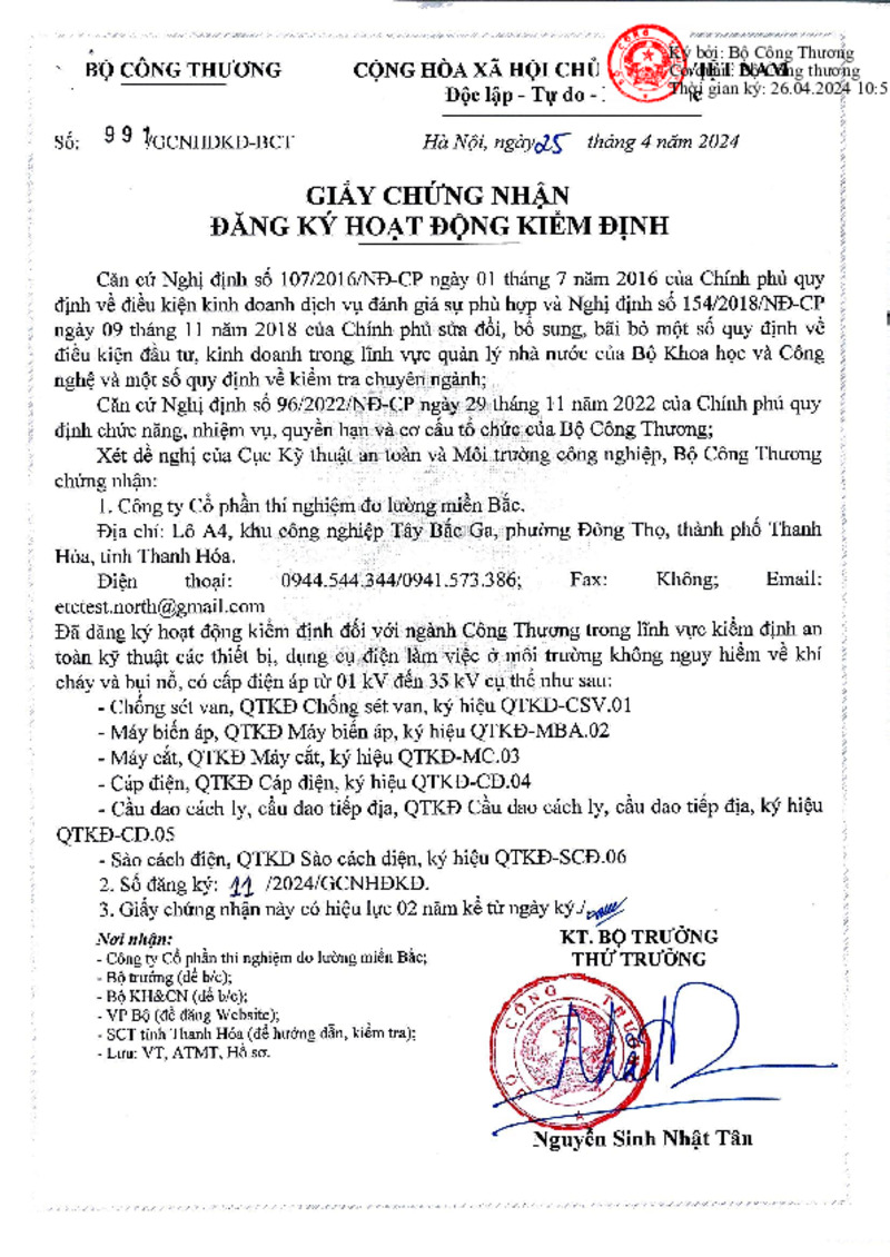 Loại tài liệu | Giấy chứng nhận | Người ký | Thứ trưởng Nguyễn Sinh Nhật Tân |
