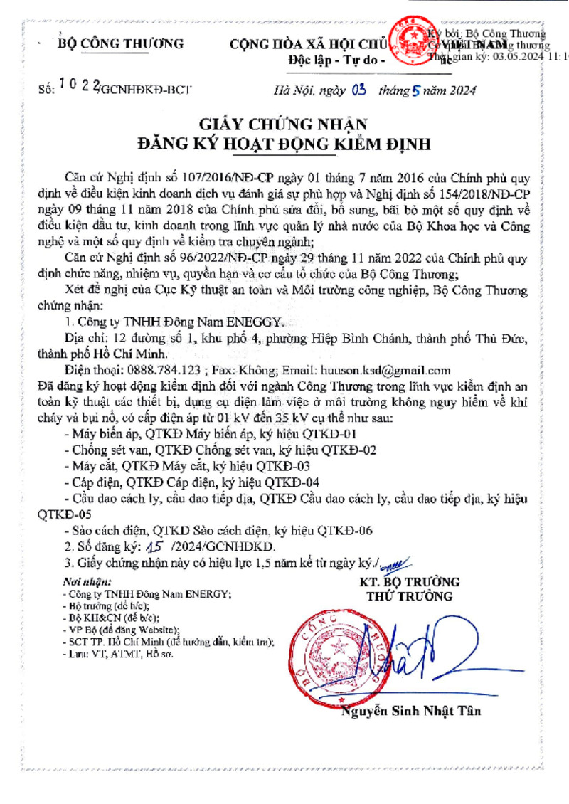 Loại tài liệu | Giấy chứng nhận | Người ký | Thứ trưởng Nguyễn Sinh Nhật Tân |