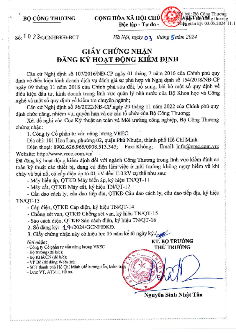 Tiêu đề văn bản | Giấy chứng nhận đăng ký hoạt động kiểm định | ||