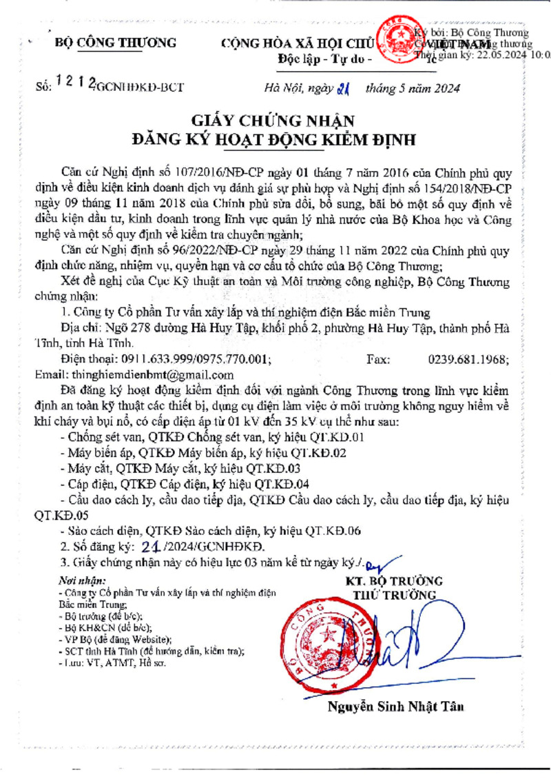 Loại tài liệu | Giấy chứng nhận | Người ký | Thứ trưởng Nguyễn Sinh Nhật Tân |