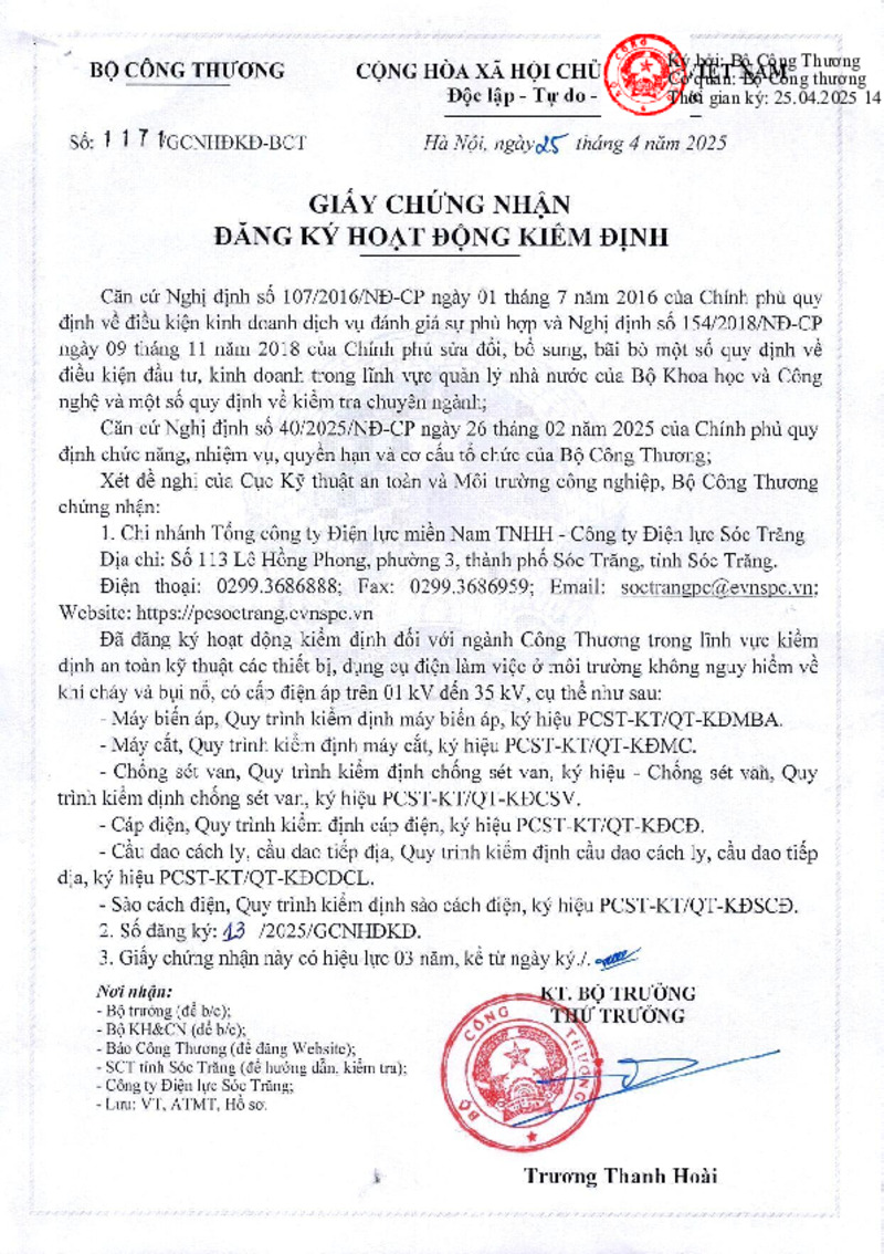 Tiêu đề văn bản | Giấy chứng nhận đăng ký hoạt động kiểm định | ||