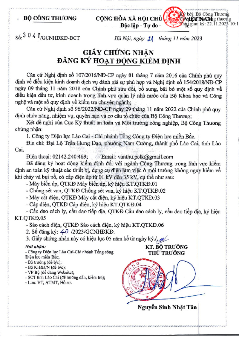 Loại tài liệu | Giấy chứng nhận | Người ký | Thứ trưởng Nguyễn Sinh Nhật Tân |