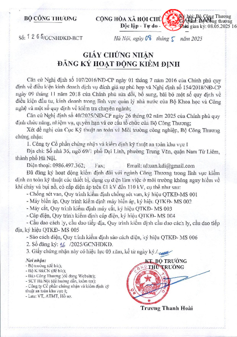 Tiêu đề văn bản | Giấy chứng nhận đăng ký hoạt động kiểm định | ||