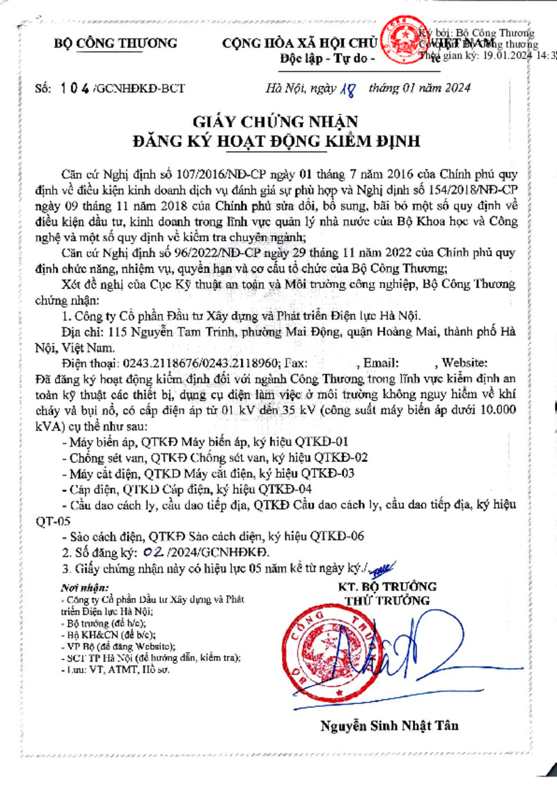Loại tài liệu | Giấy chứng nhận | Người ký | Thứ trưởng Nguyễn Sinh Nhật Tân |