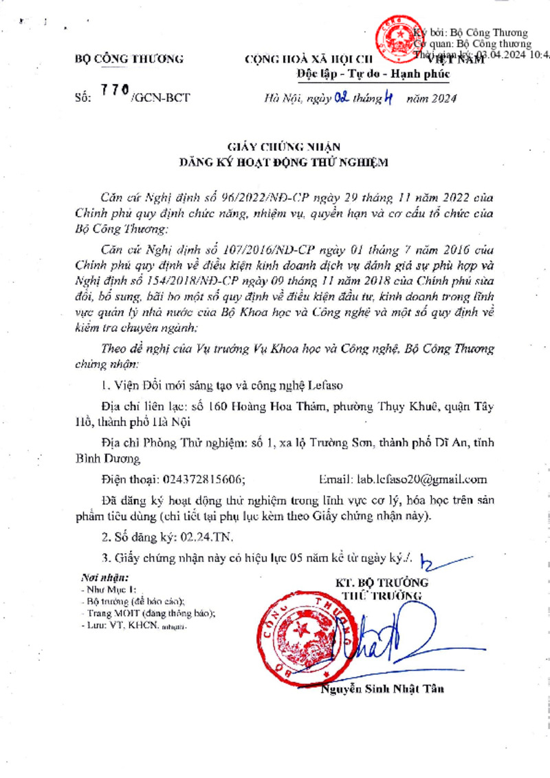 Loại tài liệu | Giấy chứng nhận | Người ký | Thứ trưởng Nguyễn Sinh Nhật Tân |