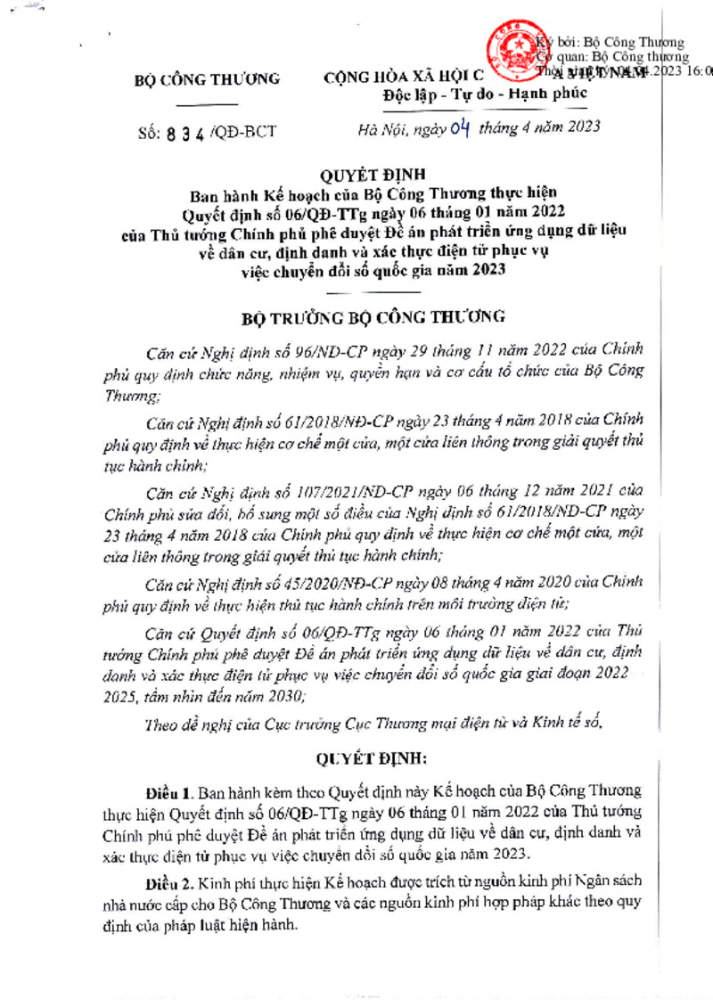 Số hiệu | 834/QĐ-BCT | Cơ quan ban hành | Copyright © 33win.com Reserved |