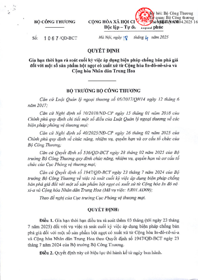 Số hiệu | 1067/QĐ-BCT | Cơ quan ban hành | ASEAN |