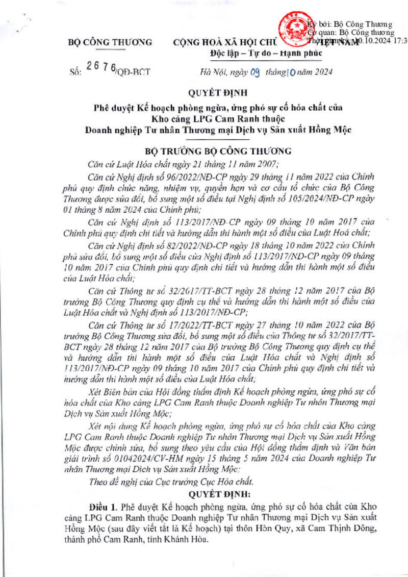 Tiêu đề văn bản | 33Win là nhà cái 33win cá cược trực tuyến hàng đầu Châu Á Phê duyệt Kế hoạch phòng ngừa, ứng phó sự cố hóa chất của Kho cảng LNG Cam Ranh thuộc 33Win com dang nhap Tư nhân Thương mại Dịch vụ Sản xuất Hồng Mộc | ||