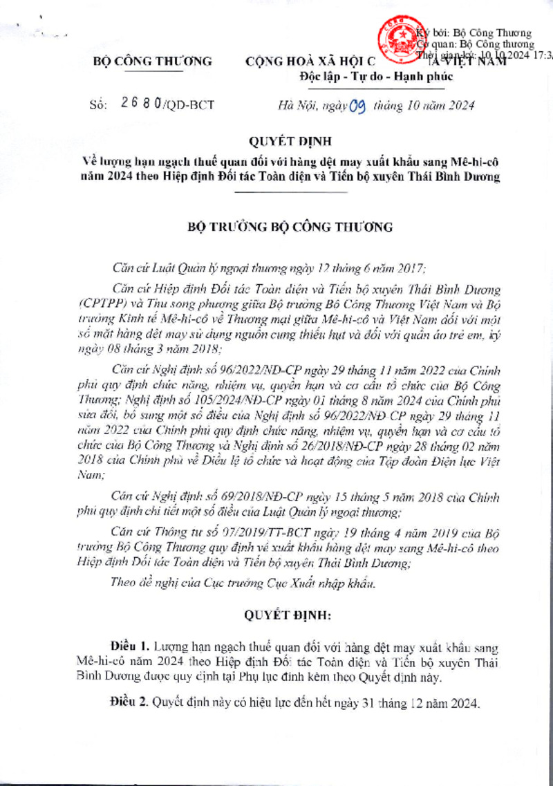 Tiêu đề văn bản | 33Win là nhà cái 33win cá cược trực tuyến hàng đầu Châu Á về lượng hạn ngạch thuế quan đối với hàng dệt may xuất khẩu sang Mê-hi-cô năm 2024 theo Hiệp định Đối tác Toàn diện và Tiến bộ xuyên Thái Bình Dương | ||