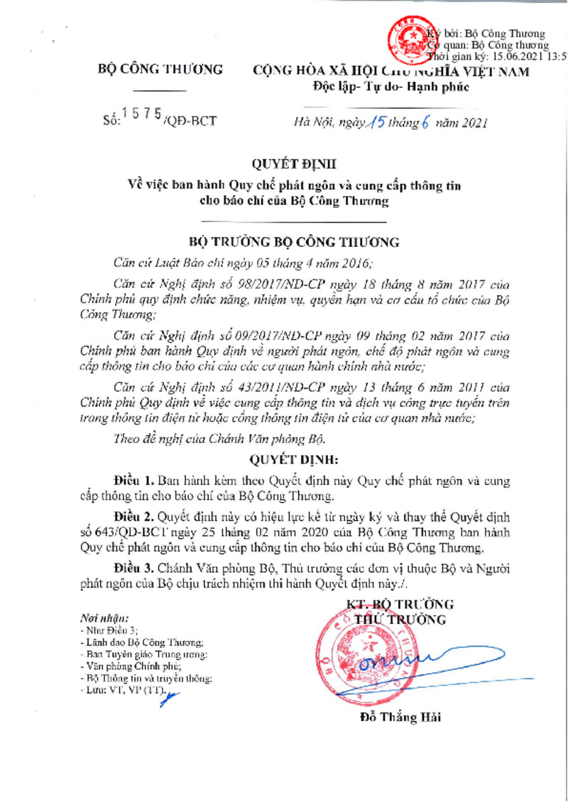 Số hiệu | 1575/QĐ-BCT | Cơ quan ban hành | Copyright © 33win.com Reserved |