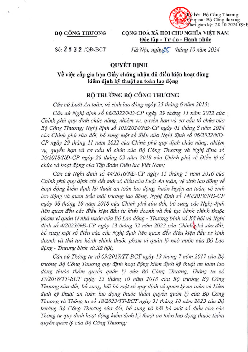 Số hiệu | 2832/QĐ-BCT | Cơ quan ban hành | Copyright © 33win.com Reserved |
