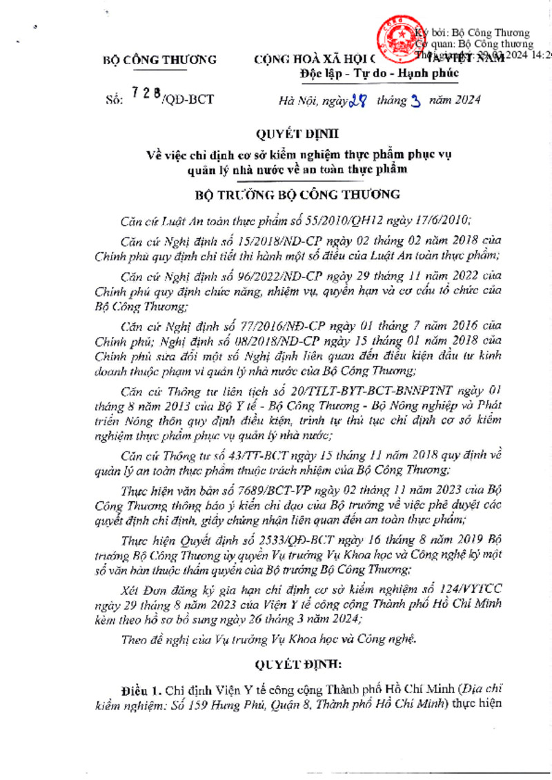 Số hiệu | 728/QĐ-BCT | Cơ quan ban hành | Copyright © 33win.com Reserved |