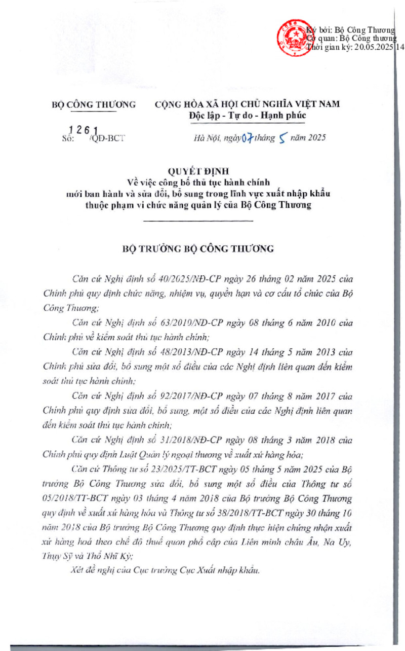Số hiệu | 1261/QĐ-BCT | Cơ quan ban hành | Copyright © 33win.com Reserved |