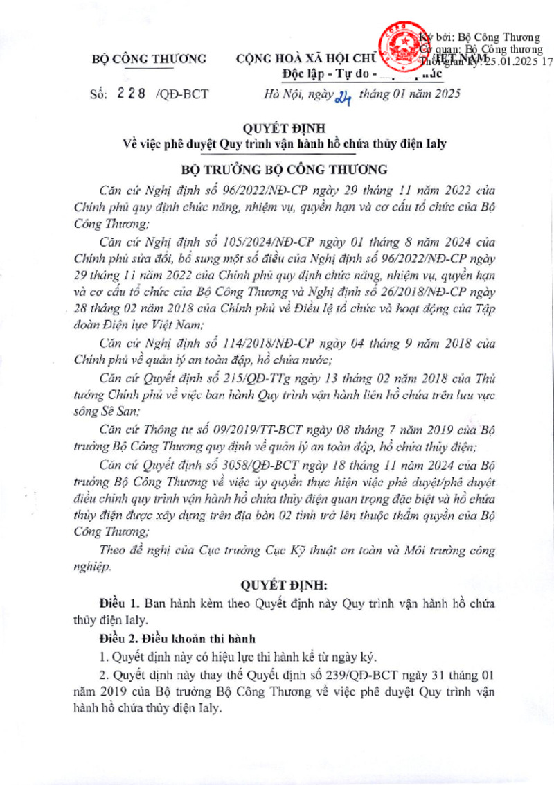 Tiêu đề văn bản | 33Win là nhà cái 33win cá cược trực tuyến hàng đầu Châu Á về việc phê duyệt Quy trình vận hành hồ chứa thủy điện Ialy | ||