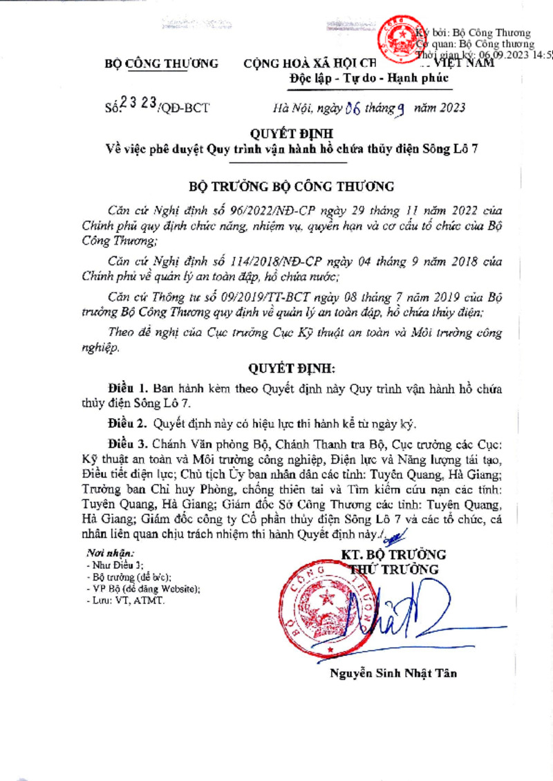 Tiêu đề văn bản | 33Win là nhà cái 33win cá cược trực tuyến hàng đầu Châu Á về việc phê duyệt Quy trình vận hành hồ chứa thủy điện Sông Lô 7 | ||