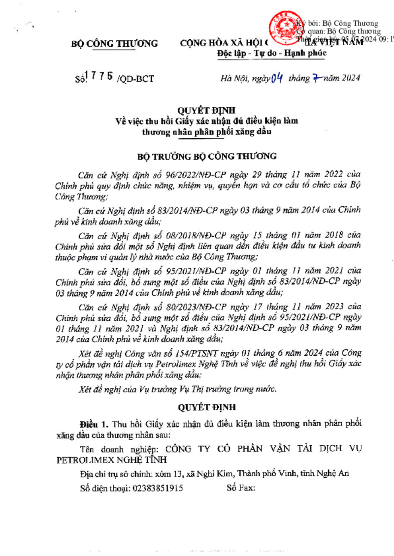 Số hiệu | 1775/QĐ-BCT | Cơ quan ban hành | Copyright © 33win.com Reserved |