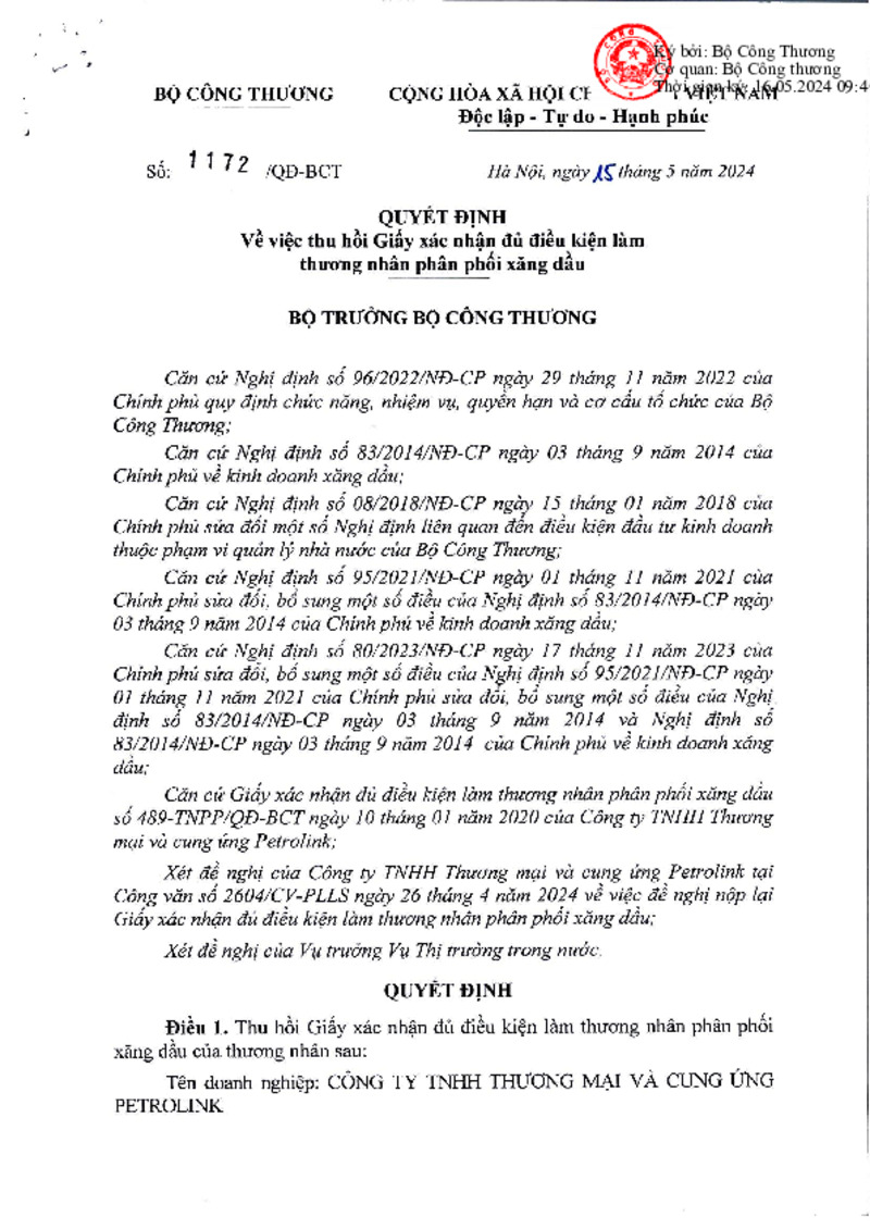 Số hiệu | 1172/QĐ-BCT | Cơ quan ban hành | Copyright © 33win.com Reserved |